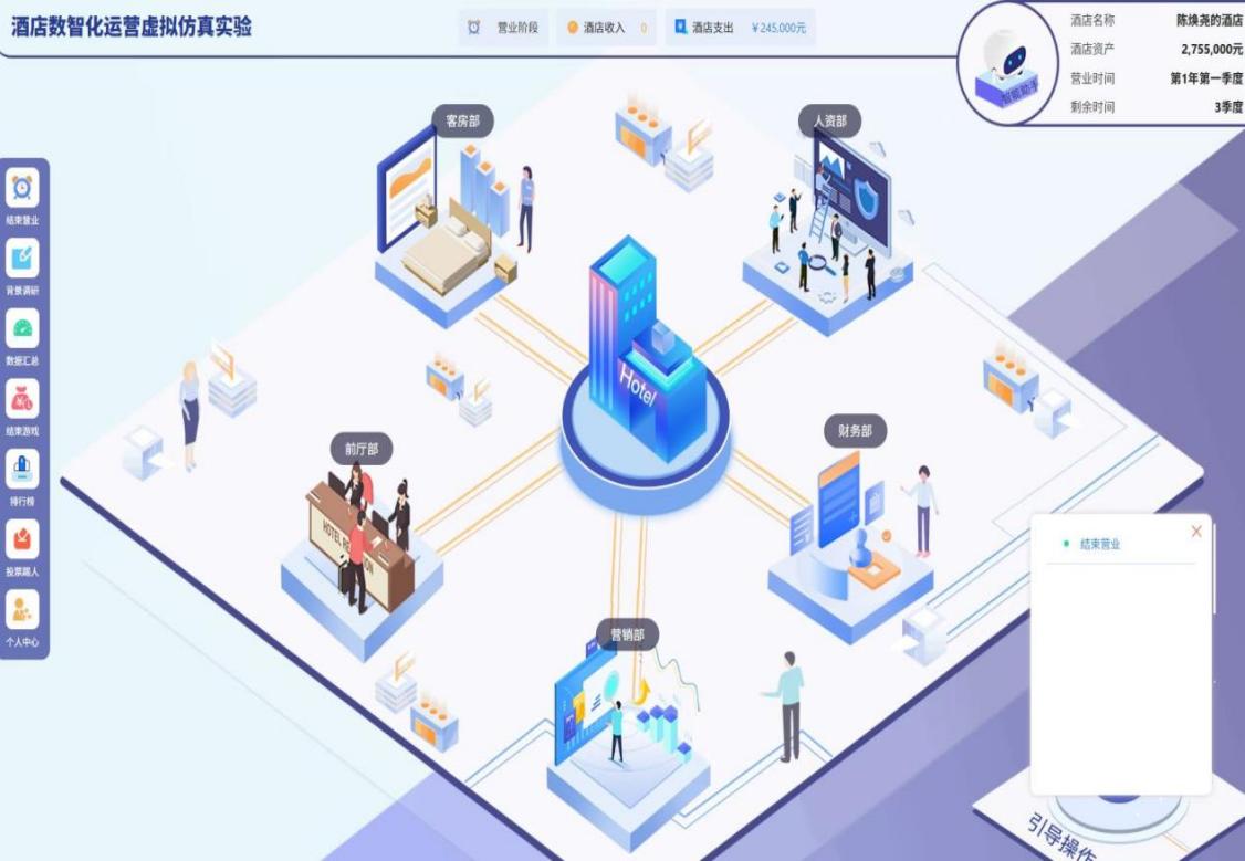 本次大赛以贯彻落实党的二十大精神及《教育强国建设规划纲要 (2024—2035 年)》为指引,聚焦 “数据要素 × 文化旅游” 融合发展趋势,旨在通过数智化竞赛平台培养文旅专业学生的创新精神与实战能力。其中酒店AI数智运营决策赛道依托自主开发的多重博弈虚拟仿真酒店运营软件,采用企业真实运营数据模拟复杂决策场景,要求参赛者完成市场洞察、数据挖掘、营销推广、收益管理等全流程数智运营任务,对学生的综合应用能力提出了极高要求。