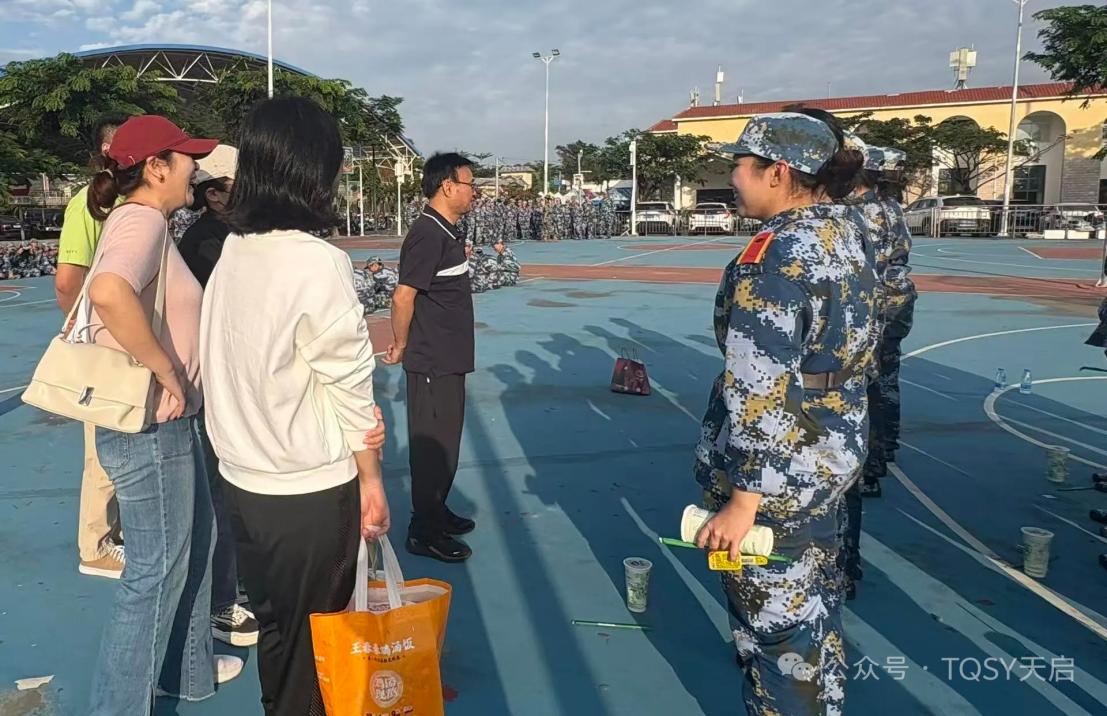 在与新生的面对面交流中,老师们化身暖心“家长”,亲切询问军训感受与日常起居,反复叮嘱新生在刻苦训练的同时兼顾劳逸结合、做好防暑降温,若遇身体不适或生活难题,第一时间向教官和辅导员反馈。同时,结合专业特色与大学生活规划,老师们鼓励新生将军训当作大学“第一课”,在汗水与坚持中磨砺意志、锤炼品格,培养吃苦耐劳与团结合作精神,以强健体魄和饱满精神迎接后续专业学习与校园生活。