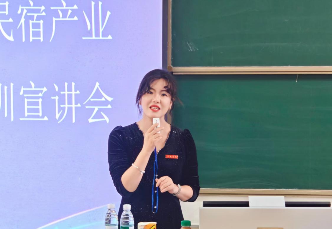宣讲会伊始,三亚学院旅游与酒店管理学院院长李慧开场致辞。她指出,在海南自贸港建设纵深推进、旅游产业数字化转型加速的双重机遇下,三亚民宿产业已从单一住宿业态升级为融合文化体验、乡村振兴的复合型产业,对兼具专业实操能力、文化浸润素养与创新思维的复合型人才需求愈发迫切。本次专项培训精准锚定产业发展痛点与学子就业诉求,既打破了校园理论教学与行业实操应用的壁垒,又打通了人才供给与市场需求的断层,以“技能提升-认证上岗-留琼发展”全链条支持体系,为同学们铺就了一条直达产业核心的职业发展快车道。李慧院长勉励学子们把握时代机遇,将个人专业所长与海南自贸港产业发展同频共振,在民宿产业这片充满潜力的沃土上开拓职业新赛道,让青春理想在服务自贸港建设的火热实践中落地生根、开花结果。
