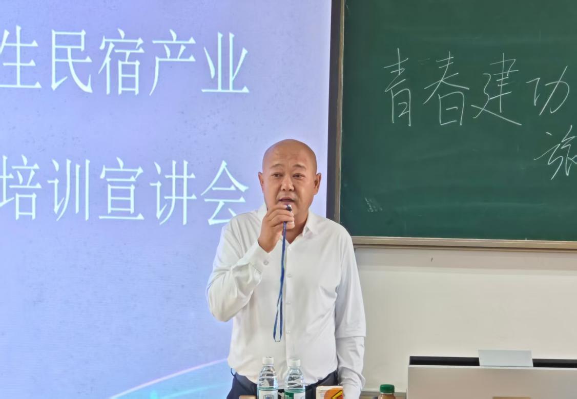 随后,海南国菁园区运营管理有限公司总经理张明军登台致辞。他从国家级平台赋能的高度,详细介绍了中国海南人力资源服务产业园三亚分园的资源优势与责任使命,并深入阐释了专项培训 “培训 - 认证 - 就业” 闭环体系的核心逻辑。张明军总经理强调,培训不仅聚焦民宿服务实操、数字化工具应用等核心技能,更创新性融入黎族非遗文化传承、乡村资源联动等特色内容,搭配交通补贴、集中通勤等暖心保障措施与留琼就业激励政策,从技能提升、权益保障到长远发展多维度发力,切实破解学子 “技能缺、机会少、发展难” 的现实困境,让同学们能够安心在海南就业、稳步实现职业成长,真正实现个人价值与产业发展的双向奔赴。