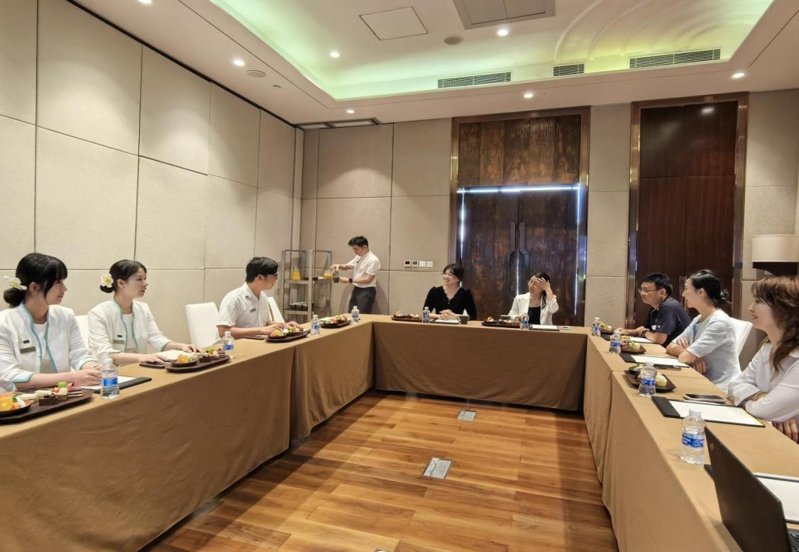 首先,李慧院长一行与威斯汀酒店人力资源部总监李雯慧及相关部门负责人举行实习座谈会,双方就实习生培养、人才供需等议题展开深度交流。座谈会上,李总监首先代表酒店对学院领导的到访表示热烈欢迎,随后详细介绍了实习生的整体在岗表现。她高度评价了三亚学院会展专业实习生的工作态度与专业素养,指出同学们快速适配岗位要求、主动融入团队协作,在活动执行、VIP接待等实操工作中展现出扎实的专业功底和较强的临场应变能力,为酒店相关业务的顺利推进提供了有力支撑。