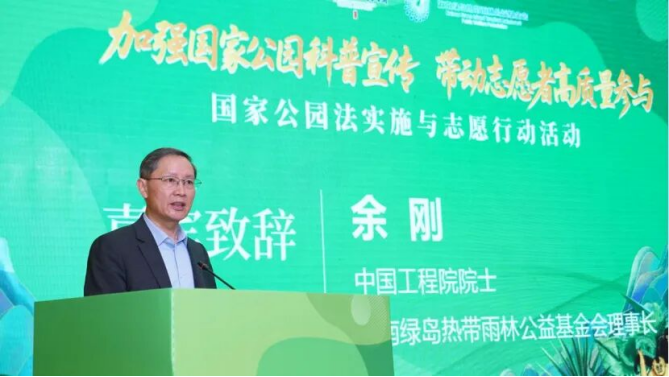 中国工程院院士、海南绿岛热带雨林公益基金会理事长余刚代表承办单位致辞