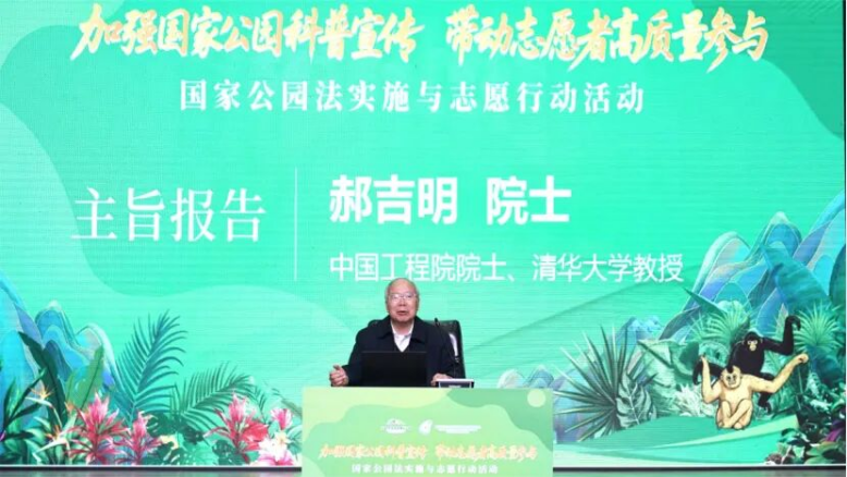 主旨报告环节,中国工程院院士、清华大学教授郝吉明作为生态环境领域权威专家,带来了高水准的科普分享,为现场观众深入解读国家公园建设的生态价值与发展路径,其专业见解引发广泛共鸣。