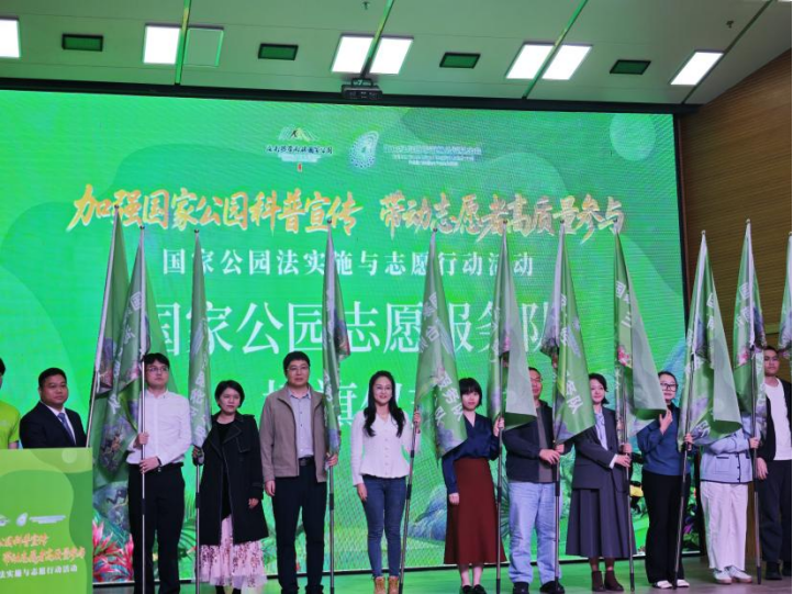 接下来的志愿者队伍授旗环节,志愿者代表集体宣誓,铿锵誓言彰显了全社会共同守护国家公园的坚定决心。