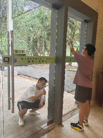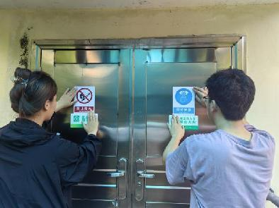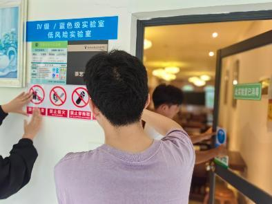 同时,学生助理们还在张南老师的指导下,大家分工协作,在各实验室显眼位置粘贴警示标识。这些标识涵盖安全、卫生、纪律等多方面内容,以醒目的颜色和简洁明了的文字,时刻提醒师生规范行为、注意安全。在实验室入口处,“保持安静”“禁止饮食”“禁止穿拖鞋” 的标识格外醒目,提醒同学们遵守实验室内的基本行为规范;“禁止烟火” 的标识时刻敲响安全警钟;“禁止乱扔垃圾” 的提示引导大家维护实验室卫生;而 “离开实验室请关闭水电门窗” 的标识,则有效避免资源浪费和安全隐患,这些标识为实验室安全筑起了一道道坚实的防线。最终,在师生共同努力下,各实验室焕然一新,安全警示全面覆盖。