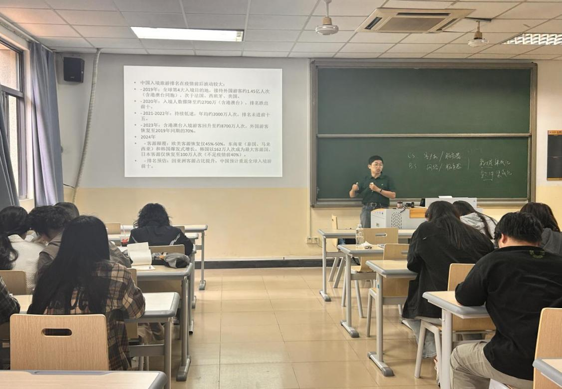 随着中国经济水平的不断提高,我国跨境旅游业突飞猛进,中国游客也日益成为令世界瞩目的优质客源。这些现象背后的经济规律和本质值得我们去认真分析。3月20日下午16:00,我院李如跃副教授在北区五教西204教室给同学们做了一场关于《中国出入境旅游游客流向及发展趋势分析》的讲座。