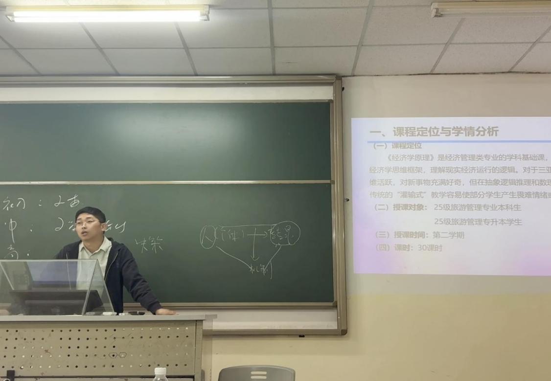 其他参赛教师也围绕各自主讲课程展现鲜明特色:梁芳老师的《旅游消费者行为》重构模块化教学结构,以“经验—理论—应用”认知闭环与项目制评价实现课堂与行业实践精准对接;张志辉老师的《旅游大数据分析与应用》通过“三层项目池”阶梯式训练,培养学生“用数据说话”的思维与能力,适配智慧旅游数字化岗位需求;李如跃老师的《经济学原理》以海南自贸港本土项目为载体,融合PBL与AI赋能,打造“真问题、真数据、真应用”的高阶课堂;余有勇老师的《商务沟通与谈判》以行业痛点为靶心,用AI工具引导学生重塑景区沟通体系,产出可落地的行业解决方案;侯明帅老师的《会计学基础》以“智能核算+业财融合”为主线,通过模拟企业数字化转型项目培养现代会计思维;巩慧琴老师的《财务管理》结合文旅行业特点,将财务核心内容与企业运营场景结合,锤炼学生行业适配性财务管理技能;胡雨凯老师的《旅游电子商务》聚焦平台运营与线上产品推广,通过实操实训提升学生数字化商务就业竞争力;陈宁老师的《旅游规划与开发》融合多学科知识,以真实项目案例引导学生挖掘旅游资源价值,培养科学创新的规划思维。