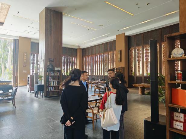 随后,我院教师与酒店人力资源总监冯总展开座谈,双方围绕2026年春季学期项目制教学合作深入研讨。结合三亚未来各类会议、赛事、演唱会等大型活动的举办需求,双方达成共识:将以真实产业项目为载体,推动会展专业人才培养与产业需求精准对接,为学生提供更多高质量实习岗位,也为酒店输送兼具理论素养与实践能力的专业人才,实现校企资源共享、协同育人。