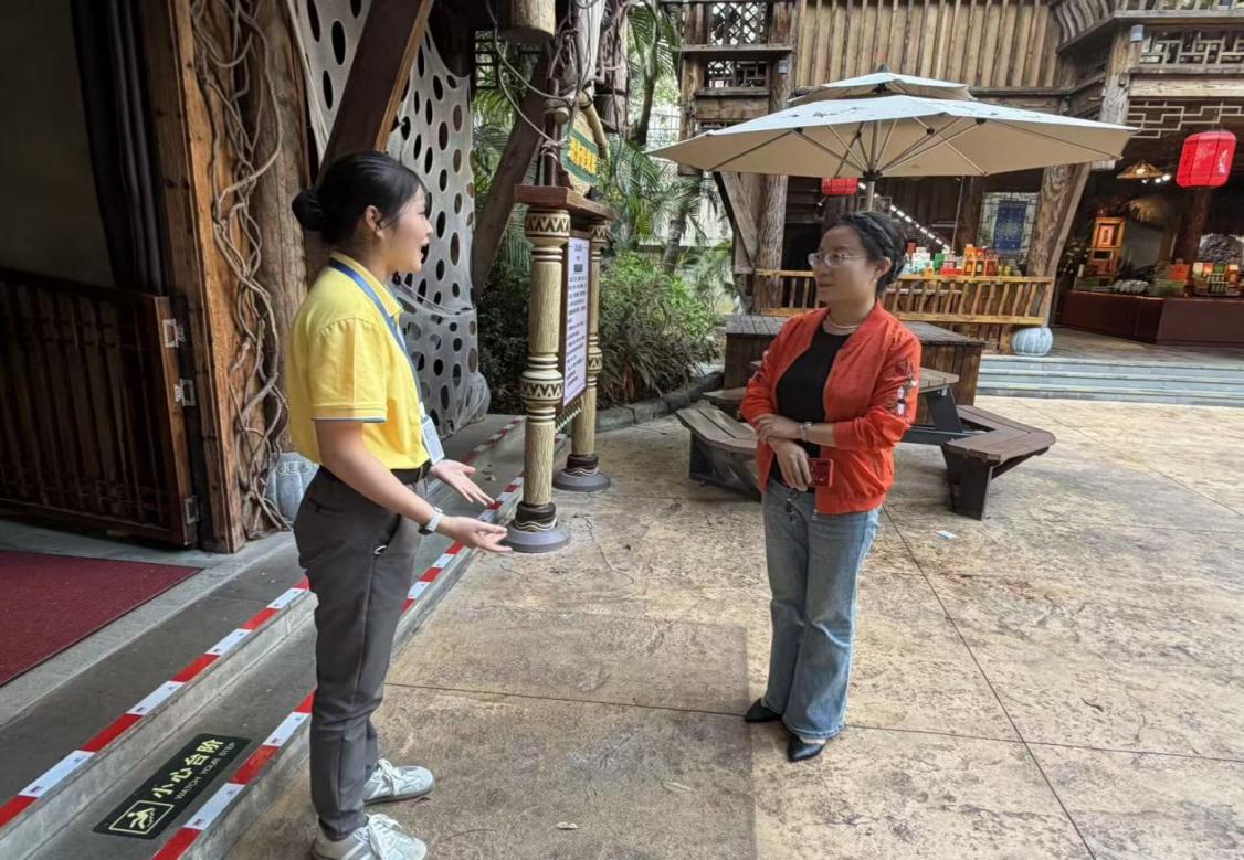 期间,王秋娜副主任一行还与三亚千古情景区实习负责人及企业导师进行深入交流。景区方对我院23级智慧旅游专业实习生的表现给予高度评价,称赞同学们专业基础扎实、工作态度严谨、适应能力强,能够快速融入岗位,在景区智慧化运营各环节中发挥了积极作用,充分展现了我院学子的良好风貌。双方围绕实习生培养、课程体系优化、校企资源共享等议题交换意见,为进一步深化千古情人才班建设、完善“理论+实践”的人才培养模式奠定了坚实基础。