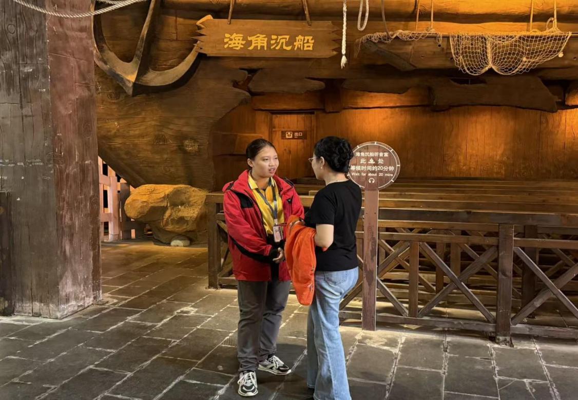 三亚千古情景区作为国内文旅演艺领域的标杆企业,以“文化+科技”双轮驱动打造沉浸式文旅体验,是智慧旅游专业学子将理论知识转化为实践能力的优质平台。王秋娜副主任一行抵达景区后,首先深入票务管理、智能导览、客流监测、数字化运营等实习岗位,实地察看同学们的工作状态,详细了解大家的岗位职责、操作流程及岗位适配情况,直观感受学子们在实践中的成长与蜕变。