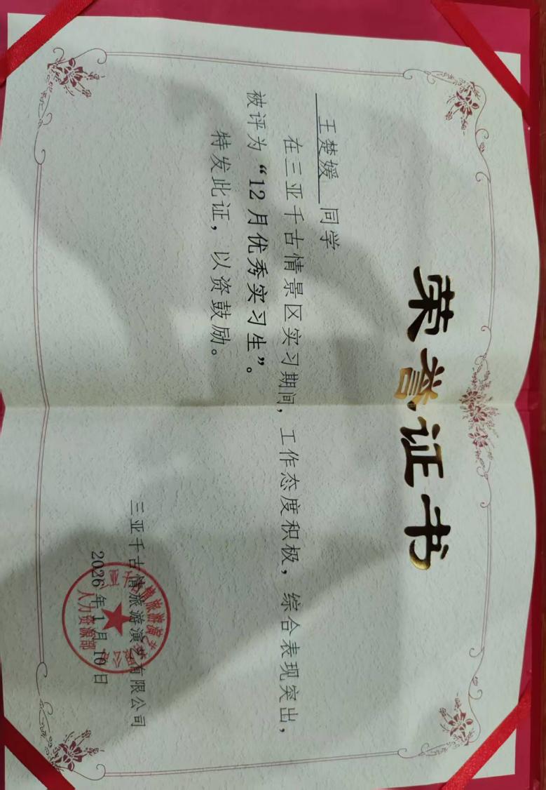 专业实习作为旅酒学院深化产教融合的关键一环,为智慧旅游2301班的同学们提供了宝贵的“练兵场”。同学们普遍认识到,智慧旅游不仅是技术的应用,更是以游客为中心的服务理念升级,是数据驱动下的流程优化与资源协同。他们在解决游客遗失物品、应对突发情况、优化沟通策略等具体问题中,将专业理论转化为服务温度与运营效能。而三亚千古情景区多元复杂的运营场景,让实习生们得以窥见大型文旅项目数字化管理的全貌,并从基层岗位理解数据如何从产生、流转到最终创造价值。他们的优异表现获得了景区各部门的认可,也印证了旅酒学院培养“既懂技术又懂业务”的智慧旅游人才的正确路径。