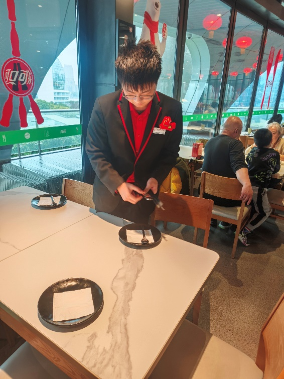 入驻东方明珠塔内主题餐厅的三名同学,直面高客流、高流转率的地标餐饮运营环境,扎根一线服务岗位展开数月实操历练。他们的工作覆盖前厅客户引导、点餐配餐服务、用餐区即时响应及突发状况处理等多个环节,沉浸式体验标准化的餐饮服务全流程。从迎宾入座的细节礼仪,到餐品呈现的精准把控,从席间的主动服务到送客离席的后续整理,同学们在日复一日的实操中,系统掌握了标准化服务流程的执行要领,形成了完整的服务闭环思维。高强度、高标准的工作场景,不仅是对会展专业服务管理知识的实战检验,更让同学们在快速响应、高效协作中,逐步培养起职业化的服务意识、抗压能力与团队配合能力,练就了文旅服务一线的硬本领。
