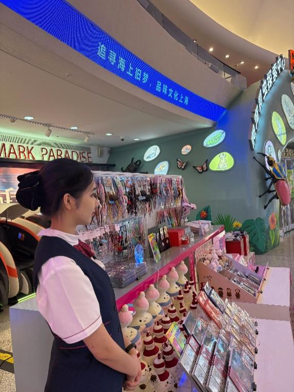 加入商业拓展部的三名同学,则深入东方明珠商业运营体系,直面动态多元的文旅消费市场,在高客流、高频次的商业一线积累实战经验。他们全程参与商品陈列、现场销售、客户服务、营销推广等全流程工作,面对不同年龄、地域、文化背景的游客群体,学会快速识别消费需求、精准传递产品价值。从热情主动的迎宾介绍,到耐心细致的产品答疑,从专业生动的产品演示,到高效促成交易的沟通技巧,每一次与游客的交流,都是一次关于信任建立与价值传递的实战演练。在这一过程中,同学们的市场洞察能力、沟通表达能力与临场应变能力得到全方位打磨,对文旅商业运营的逻辑与节奏也有了更深刻的理解。
