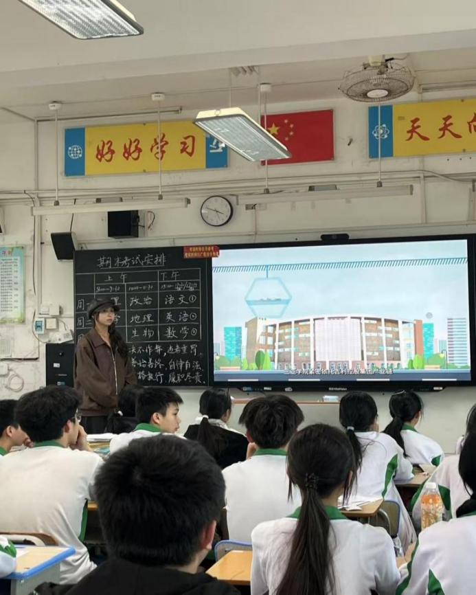 寒假期间,三亚学院旅游与酒店管理学院酒店管理专业2501班的孔惠芬同学回到母校海南省嘉积第二中学宣传我的大学。在此次活动中,每个班级的同学都很热情的向我们提问,他们那种对于大学生活的好奇深深感染了我,看着班级里密密麻麻的书本和坐的挺直的身姿以及熟悉的校服,好似带我回到了那个充满奋斗与天真的日子。在介绍完PPT之余,我们又播放了一段在生活片段的vlog,让他们更加深入了解了真正的大学生,大学生活是什么样,使他们对大学有了更多的憧憬与遐想。