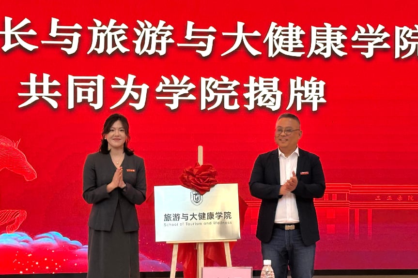 为深入对接海南自由贸易港产业发展核心需求,主动响应自贸港建设对文旅大健康复合型人才的迫切呼唤,聚焦跨学科专业融合创新,着力培养具有复合能力的国际化高水平应用型人才,三亚学院整合旅游、外语、体育、健康管理、应用心理学等优势学科资源,于3月27日正式成立旅游与大健康学院,校长沈建勇与学院院长李慧为新学院揭牌,全体在校校领导、各职能部门负责人、学院师生代表共同见证这一重要时刻。