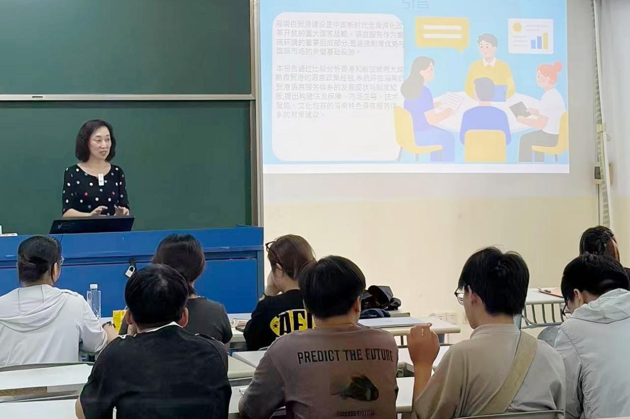 本场学术报告内容详实、视野开阔,是学院积极响应学校 “项目制教学改革”及“产教融合” 的重要实践。学术报告为全院师生深入理解自贸港建设背景下的语言服务提供了思考和启发,对学生参与海南自贸港的语言服务体系建设与实践具有积极的指导意义。