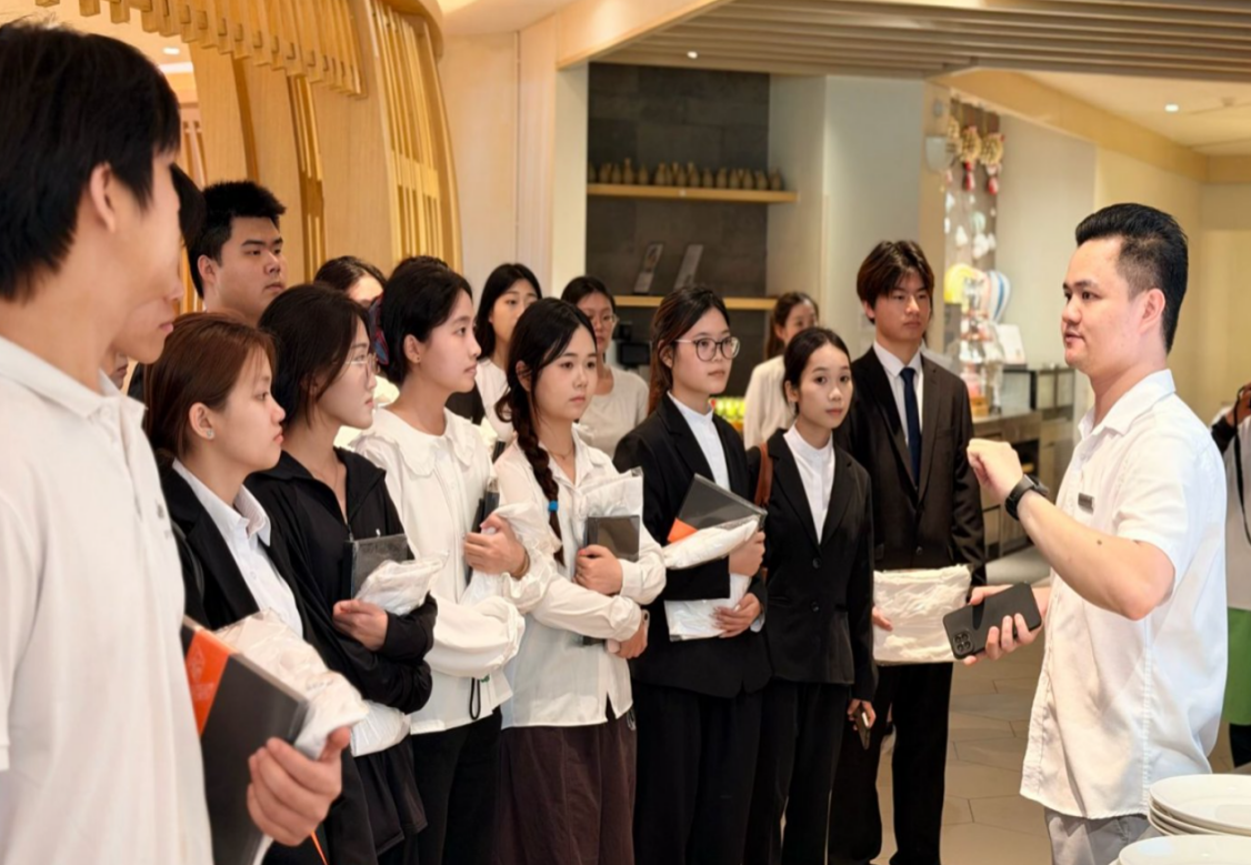 专业教师与酒店高管围绕项目制教学开展供需合作对接研讨,同时,英才班学员同步参观仁恒皇冠假日度假酒店,沉浸式感受高端酒店的运营与服务文化。