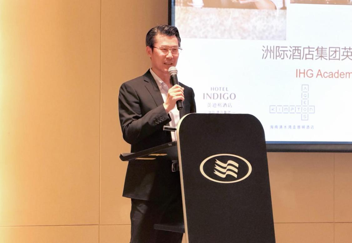 海棠湾仁恒皇冠假日度假酒店总经理关总代表合作酒店发言致辞,他全面介绍了洲际酒店集团的全球布局与发展理念,分享了集团在人才培养、职业发展体系建设上的丰硕成果,英才培养项目的平台优势,以及“人企共生、职能赋能培训”的人才发展理念。关总表示,本次共建的英才班将为学员搭建直通洲际管培生体系的优质通道,为同学们的职业发展提供更广阔的平台与更具竞争力的成长路径,期待与三亚学院携手,共同培养高素质、专业化的酒店行业人才。