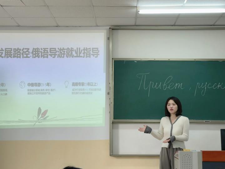 近日,为加深学生对俄语专业应用前景的认识,明晰未来职业发展方向,俄语系举办了一场题为“推开新世界的大门:俄语导游的职业前景与入行门槛”的专题讲座。讲座由俄语系教师李火老师主讲,吸引了众多俄语专业及相关专业的学生到场聆听。