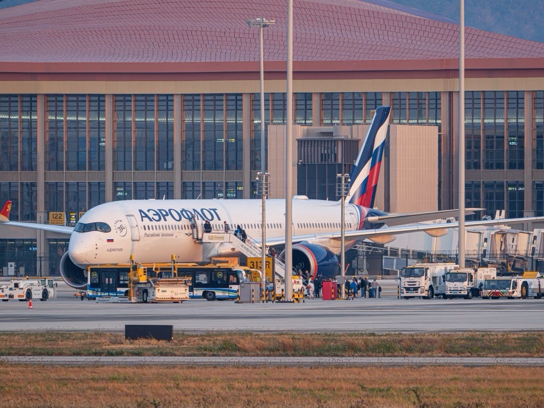 俄罗斯国家航空空中客车A350-900在三亚凤凰国际机场