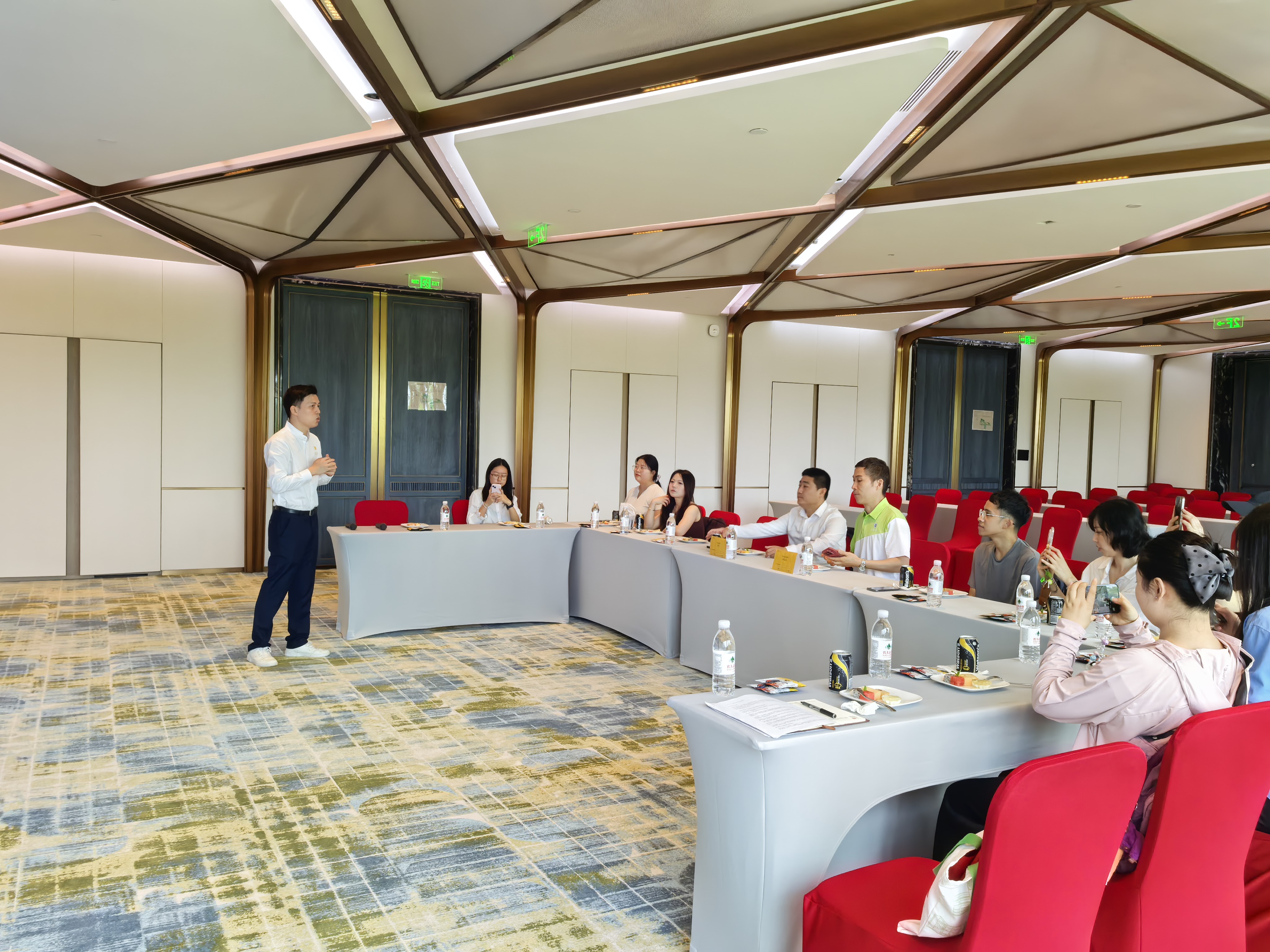 实地参观结束后,校企双方开展专题座谈交流会。会上,酒店的培训经理详细分享了洲际酒店集团在海南自贸港的发展布局,以及三亚湾 voco 酒店在品牌焕新、服务创新、客群运营、文旅融合等方面的实践经验,并围绕自贸港建设背景下高端酒店行业的发展趋势、市场机遇与运营挑战进行了深入分析。