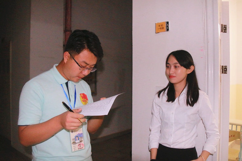 面试开始前,大家陆续进入教室,纷纷签到进行身高测量,全场秩序良好面试过程中,面试者们大方自信,充分展现自己的专业能力以及优秀的综合素质。面试的过程可以说是既严肃又轻松,面试官对每一位同学在身高、活动期间时间的分配、是否之前有过工作经验、心仪的部门、是否服从调剂等方面进行了提问。每一个人都积极参与其中,认真表达了自己对职位的要求,在礼宾、宴会厅、销售等职位中找到适合自己的岗位。面试如火如荼地进行,参加面试的评委老师通过向面试者提问,了解大家在表达能力、工作能力、英语水平、专业知识、对此次志愿活动的了解程度等方面的相关知识。
