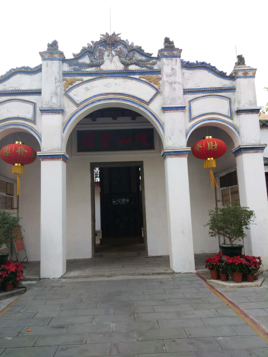 陵水琼山会馆大门,四根大方柱,形成外面三叠重穹的中西式门牌。首先映入眼帘的是挂在门框上的门匾——琼山会馆。看到这四个大字我迫不及待的想了解一下它的历史,进入旧址了解了琼山会馆的由来,琼山会馆是由1921年,琼山籍商人符光献于1921年发动来陵水县经商的琼山籍商贾募捐集资建造的一幢祠堂式砖木结构建筑物。供到陵水经商的琼山人用于联络、聚会、救助同乡等。每逢庙会及元宵节,陵水的琼山籍老乡,都聚集于此共庆佳节,过往琼山籍商人也常在此寄宿。