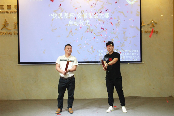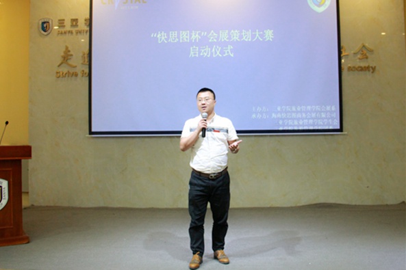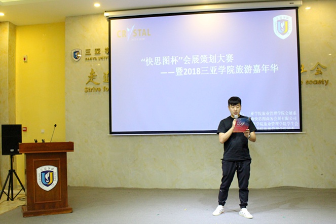 比赛正式开始前,王翔书记应邀致辞,他表示:“首先,我代表三亚学院旅业管理学院感谢四位企业代表人的到来。其实四位都是我院培养出的优秀毕业生,在今天这样的场合中,我们可以看到他们在走向社会后,通过合作创业取得的优良成果,十分值得大家学习。今天,他们以重返校园的方式,在我院多彩旅游嘉年华到来之际给予学弟学妹们更多更直接、更有感染力和榜样示范作用的支持和影响,这也充分展现了我院多年来的育人理念。因此,再次感谢四位优秀学长对活动的大力支持。第十二届多彩旅游嘉年华在会展专业各老师的带领下,展现了丰富的活动内容,作为学院的老师,很惊艳于各同学的多才多艺、奇思妙想。在此预祝今晚的“快思图杯”会展策划大赛圆满成功!”