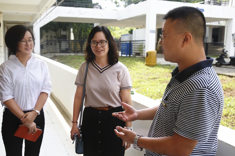 石玲、祝弘扬老师与学生干部确认寝室维修登记信息