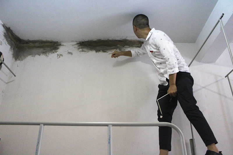 思想导师程璐检查宿舍墙面