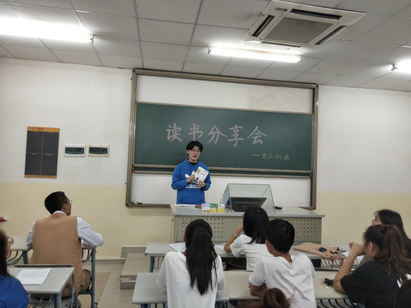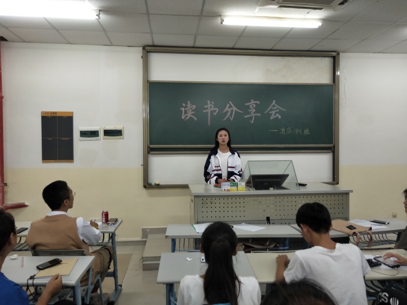11月8日星期四晚上七点,在书知楼2202教室,酒店1801班开展了读书分享会活动,由6位同学分享读过的精彩书籍,班里同学对其感兴趣的内容进行提问,并票选出前三名。