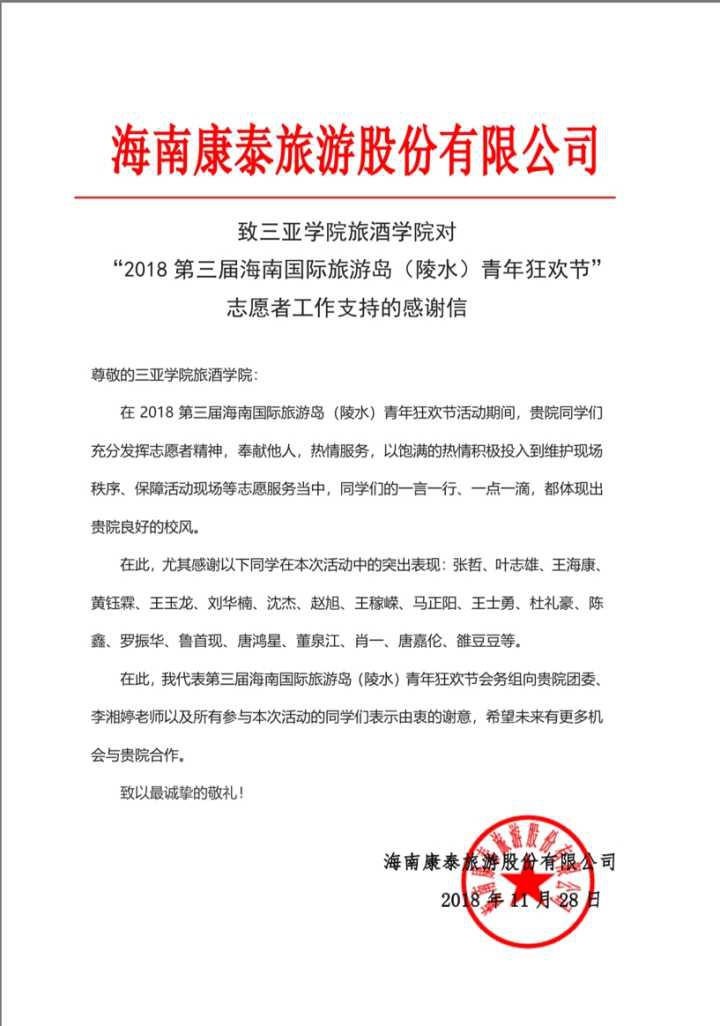 在陵水青年狂欢节志愿者活动招募中,我院共有60名优秀的志愿者参与其中,此次大会就是对这60名志愿者在志愿活动中的优秀表现进行表彰,大会在主持人剪短的开场词中缓缓地拉开序幕。首先,此次会议邀请到李湘婷老师的发言,她表达了对此活动的看法以及对本次活动的总结,还对60名优秀的志愿者进行表扬,并着重的表扬了在本次志愿活动中个别表现极其优异的同学,以此作为对同学们的鼓励。并且,老师还提到,本次活动的主办方将会对表现优异的同学留下表扬信、送上锦旗。