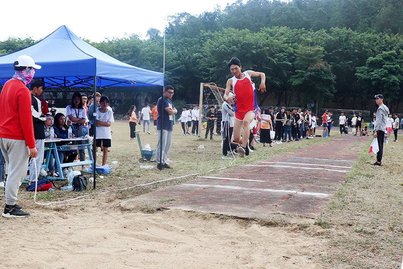男子三级跳远决赛开始,我院运动员黄帅身体前倾直视沙地,握紧拳头做好起跑姿势。“跳!”随裁判一声令下,他左脚在前,右脚在后,起跑时形成“弓”字步平衡身体,加快冲刺速度,灵巧地完成单足跳、跨步跳、跳跃三个连套动作,快速屈腿抬膝落入沙地,赢得现场观众声声喝彩。紧接着选手薛嘉祺也以同样标准姿势准确双脚落入沙地,取得有效成绩。本次比赛选手中藏龙卧虎,不乏一些后来居上的优秀选手,我院两位运动员最后虽并未进入决赛,但其二位在赛场上不服输的精神值得所有人对其报以敬意,赛后两位运动员接受采访时表示都为这次比赛做了一些准备,练习动作等,这次虽未发挥出最好的成绩,但来年依旧会参加,争取更好的名次。