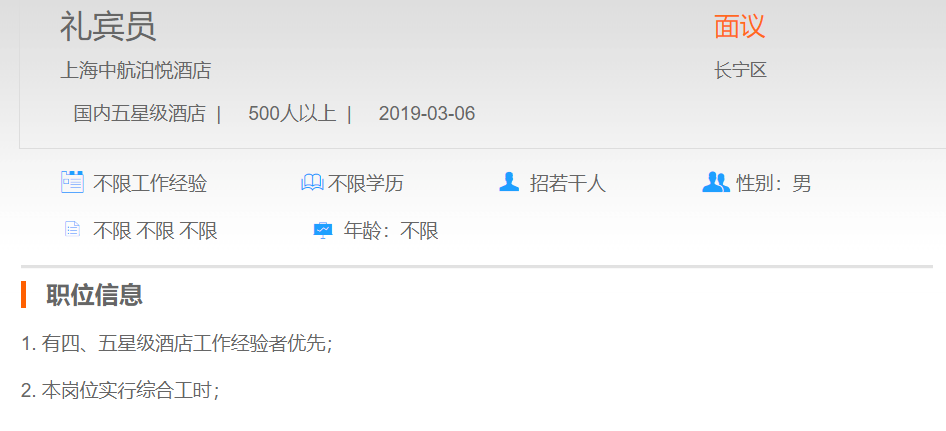上海中航泊悦酒店礼宾员