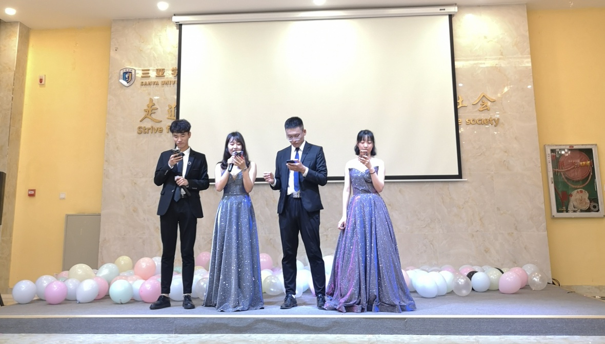 晚会伊始班委团给大家带来的开场舞点燃了全场的气氛,接着美丽帅气的主持人上场给大家新年祝辞,并依次介绍了出席晚会的嘉宾。
