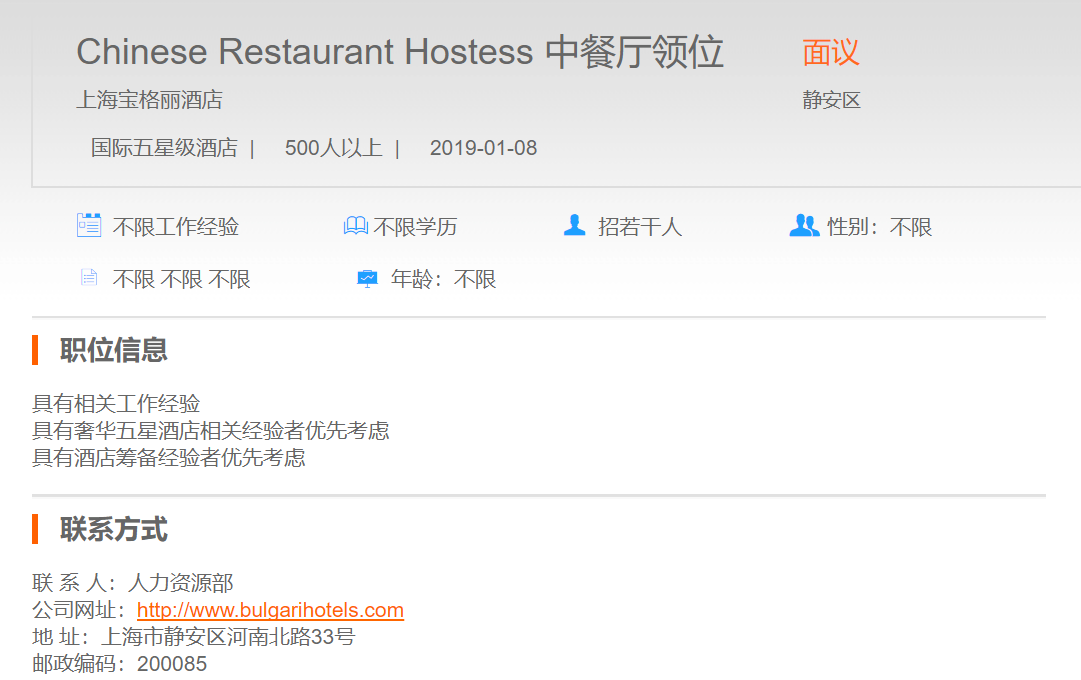上海宝格丽酒店中餐厅领位