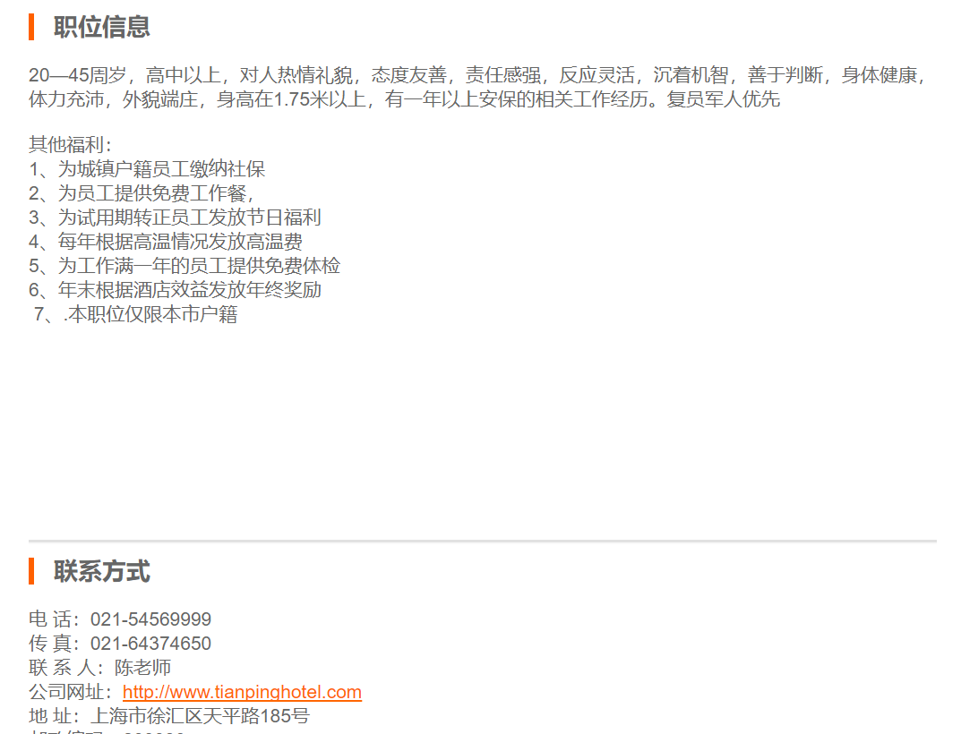 上海天平宾馆安保