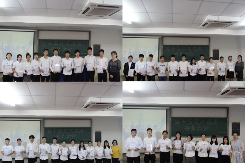 在颁奖环节中,由张欢经理、吴小柳老师及李琴老师为此次活动的志愿者们颁奖,志愿者们分小组依次上台领奖。大会最后,张经理与我院参会老师及志愿者们进行合照,此次大会圆满结束。