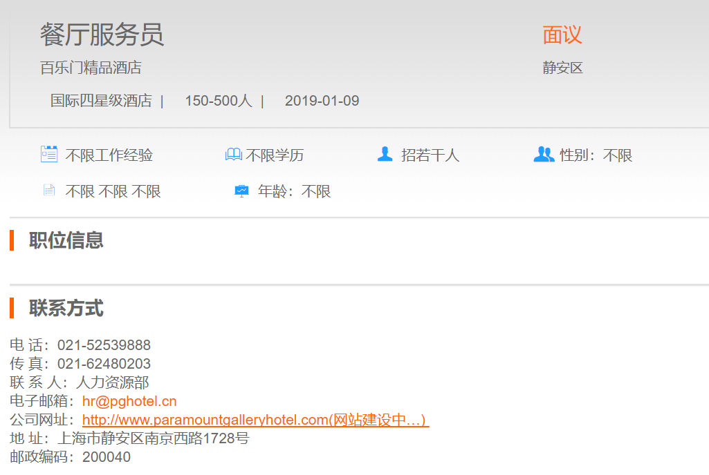百乐门精品酒店餐厅服务员