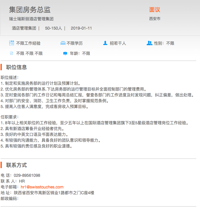 瑞士瑞斯丽酒店管理集团-集团房务总监