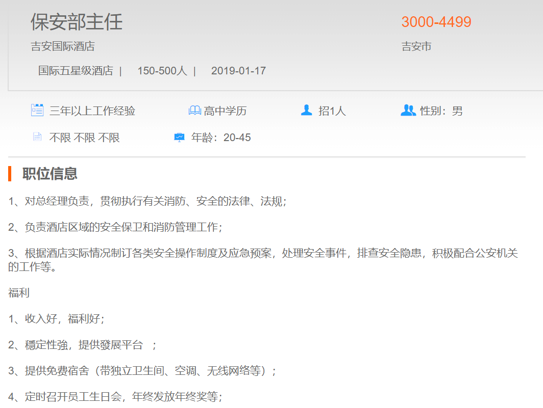 吉安国际酒店保安部主任