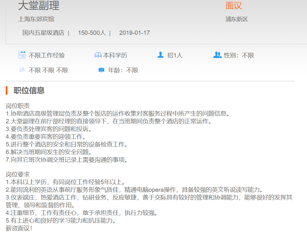 上海东郊宾馆大堂副理