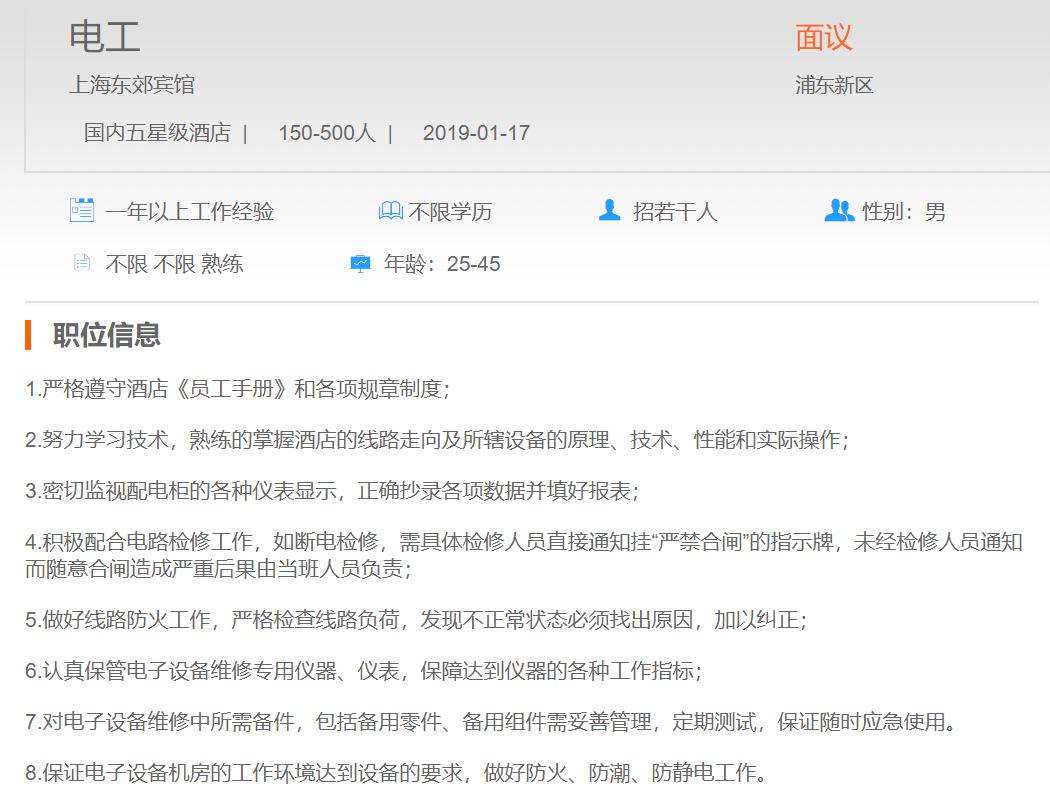 上海东郊宾馆电工