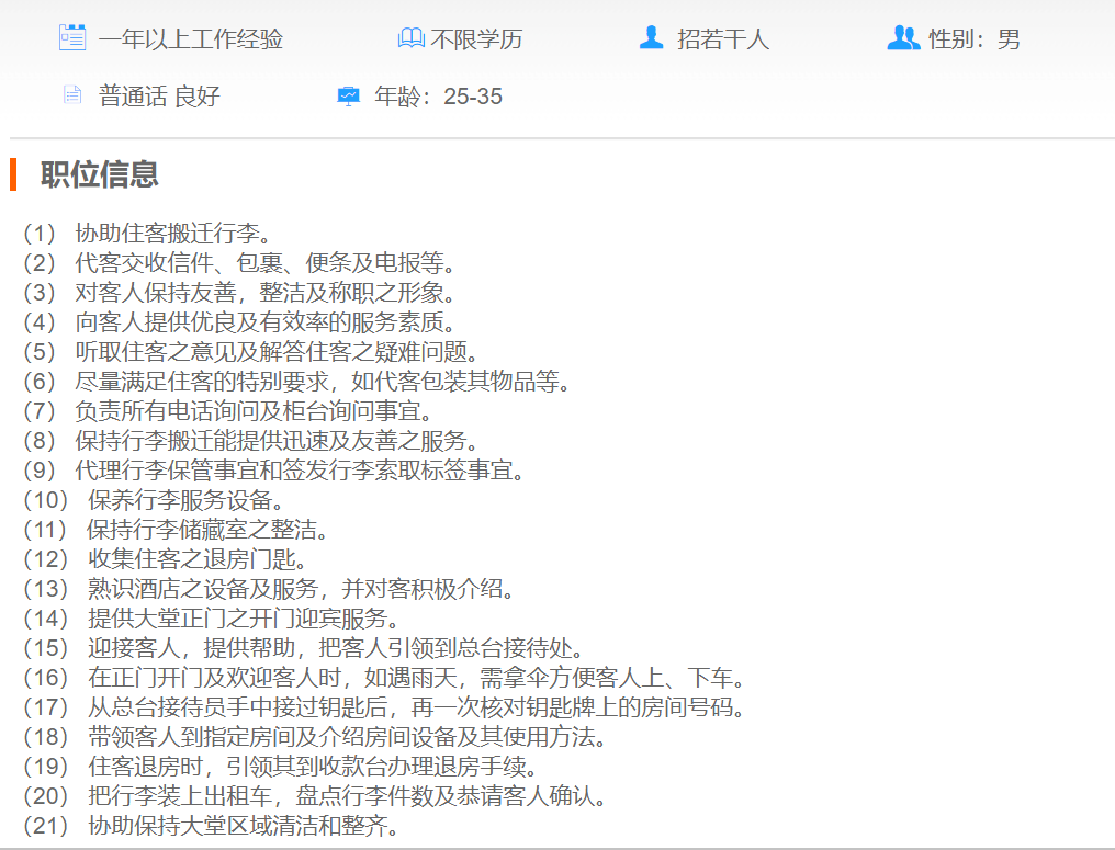 上海金水湾大酒店前台行李员