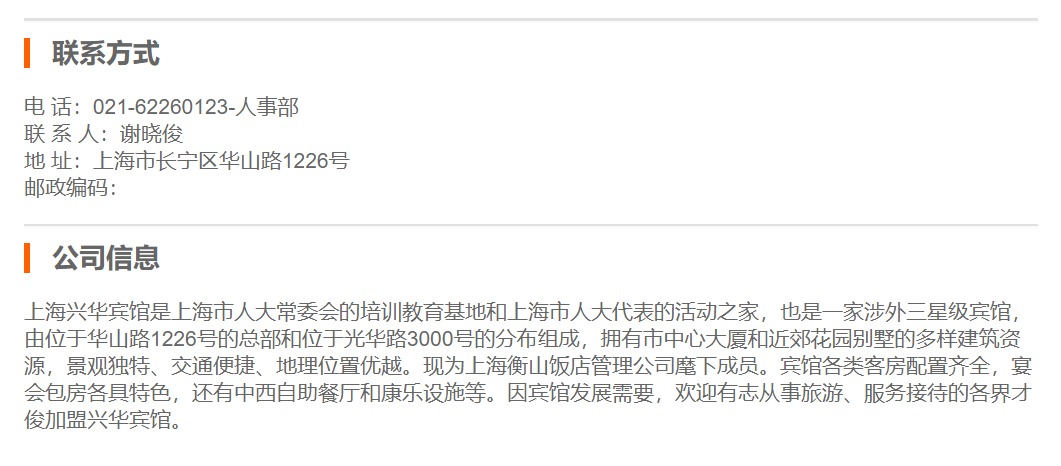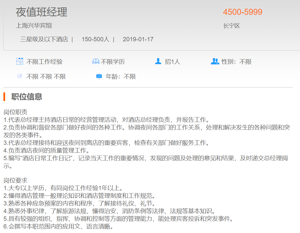 上海兴华宾馆夜值班经理