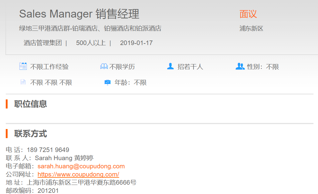 绿地三甲港酒店群销售经理