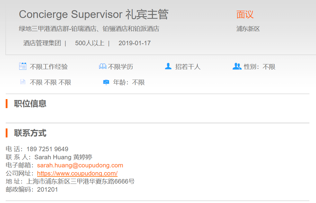绿地三甲港酒店群礼宾主管