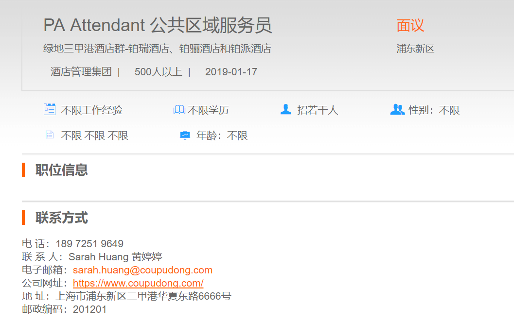 绿地三甲港酒店群公共区域服务员