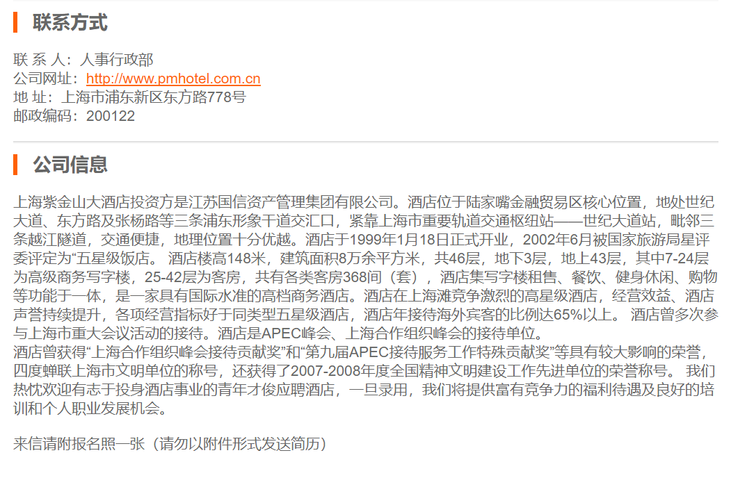 上海紫金山大酒店劳资专员