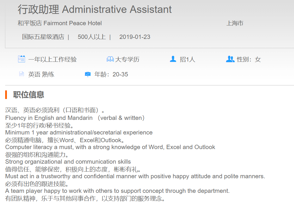 和平饭店行政助理